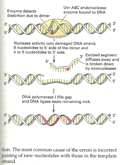The genetics textbook picture above ….states   dimer and 4 or 5 nucleotides to the  3 side.