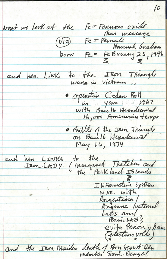 10 Hannah Graham and Fe = Ferrous oxide IRON