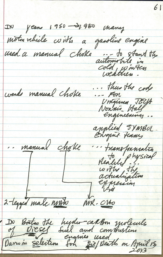 61 automobile manual choke –> murder of a man named Mr. Cho